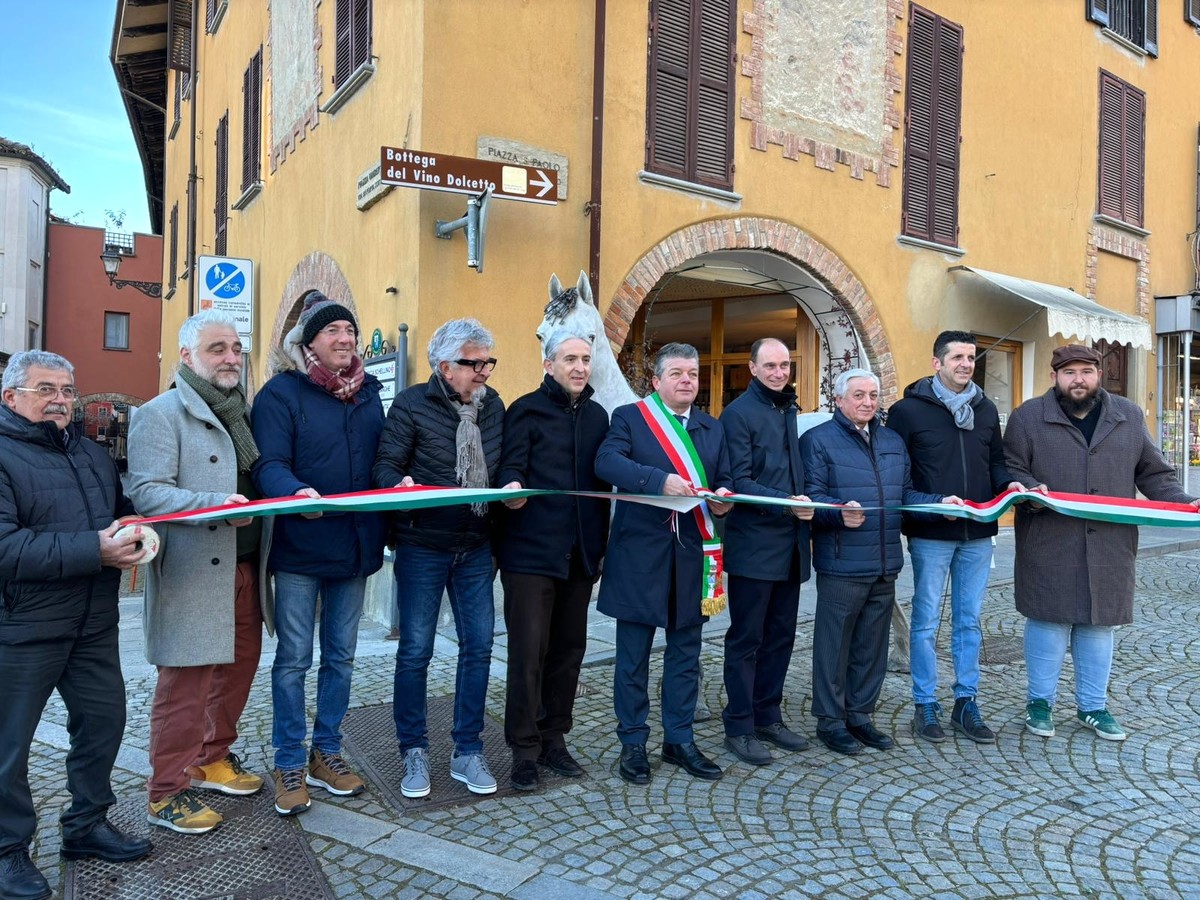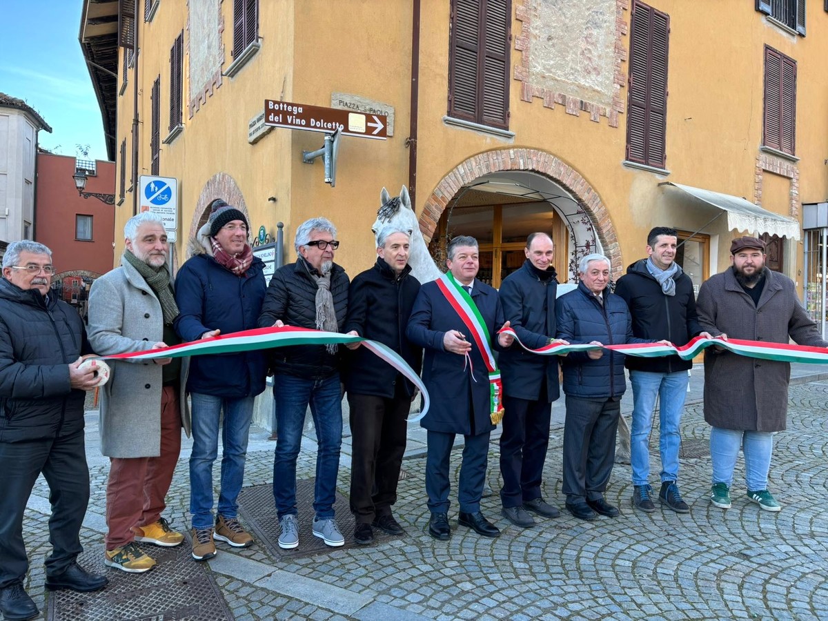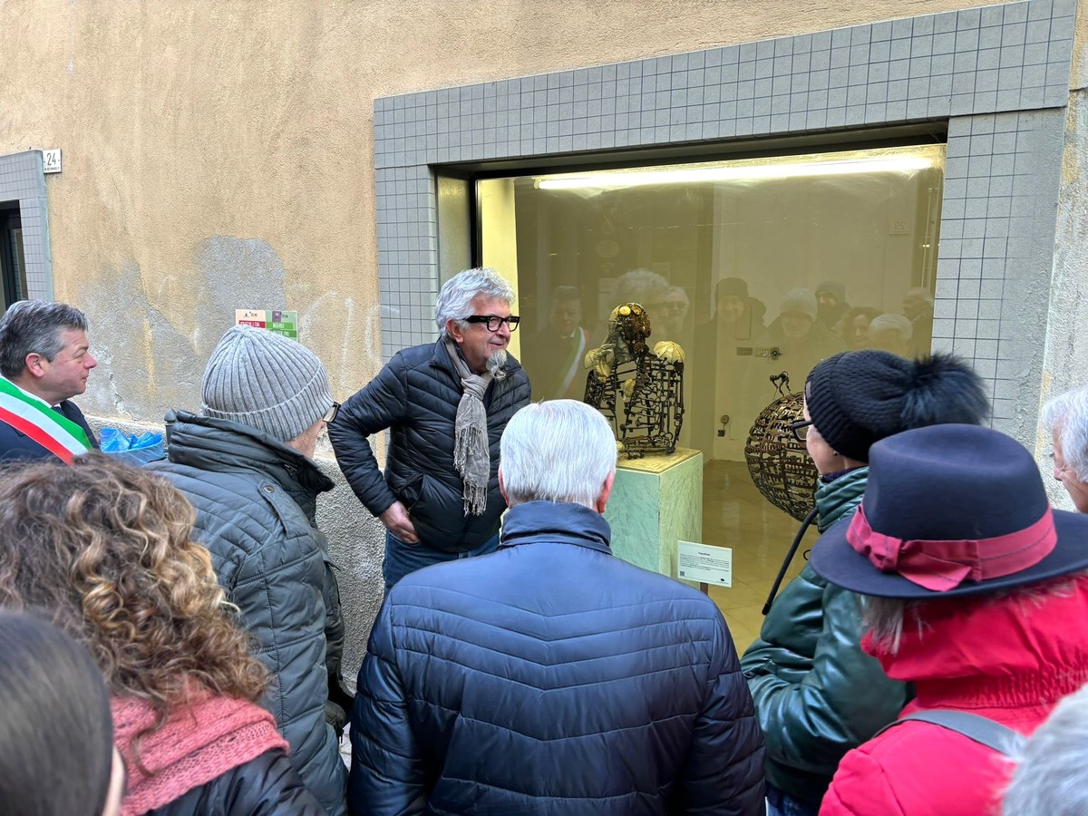 Il tempo che sfugge all’uomo e scorre inesorabile. Con questa opera, esposta in via eccezionale, si è aperta questa mattina, domenica 22 dicembre, la mostra en plein air nel centro storico di Dogliani.