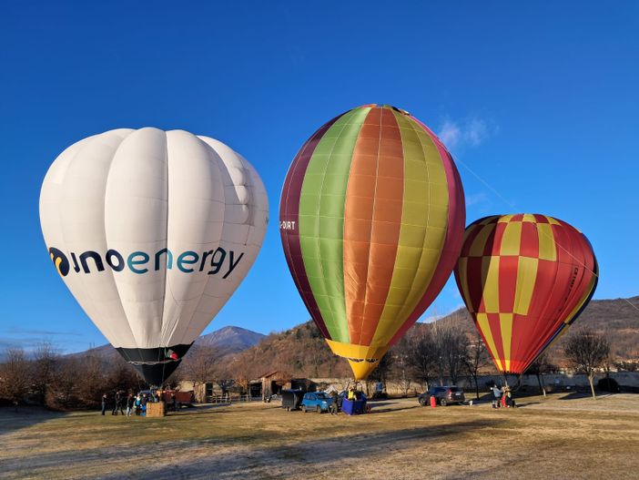 Tre mongolfiere, di cui due inglesi ed una monoposto hanno colorato i cieli del marchesato in attesa del al raduno mongolfiere dell’Epifania di Mondovì.