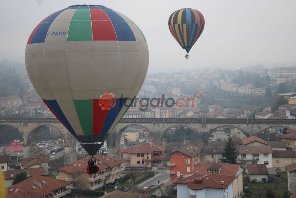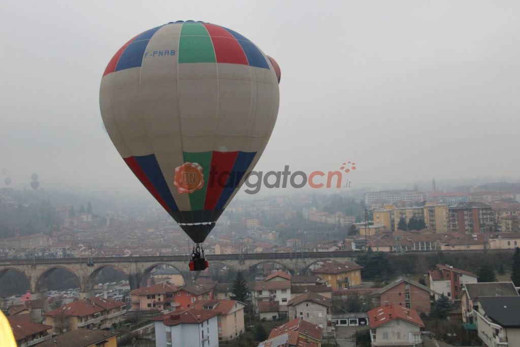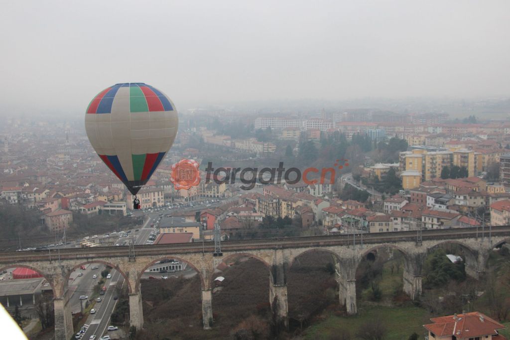 Nonostante inclemente e le non ottimali condizioni di visibilità il pallone aerostatico della "Singe volant", che ha ospitato rappresentanti di alcune associazioni locali, l'assessore regionale Marco Gallo e alcuni giornali, tra i quali la nostra testata, è riuscito a decollare da corso Inghilterra, fino a raggiungere la collina di Piazza.