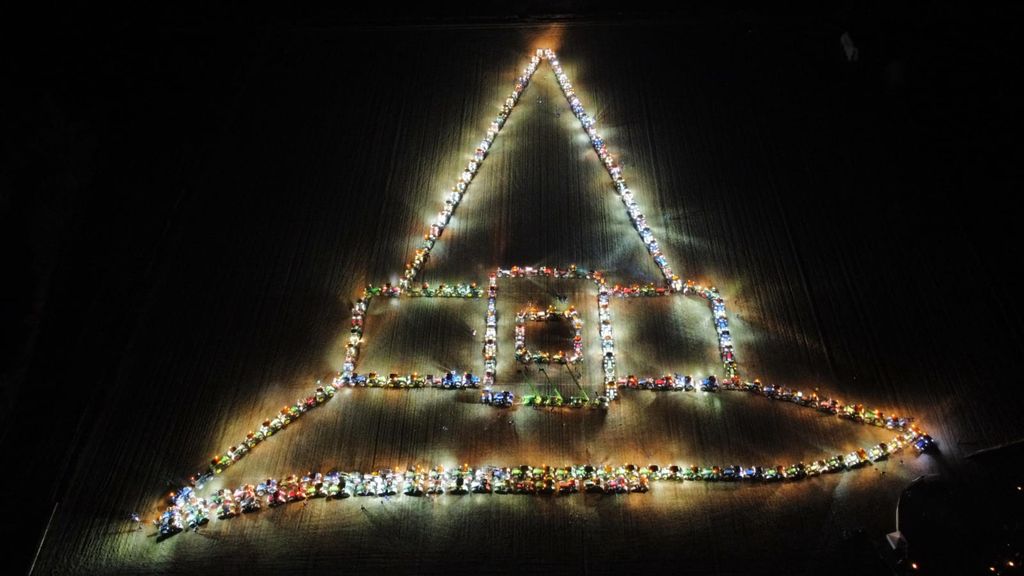 Sono stati 214 i trattori che, nella serata di domenica 5 gennaio, in occasione dell'Epifania hanno dato vita a una spettacolare coreografia creando un cappello da Befana.