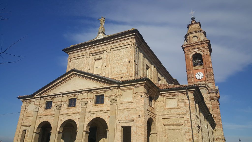 È rivolta verso Sud e l'abside a Nord con il campanile ad Est. Nel 1769 termina la costruzione dell'edificio nelle sue opere principali. Nel giugno del 1773, tolti i ponteggi, le fornaci e i mucchi di detriti, appare un'opera meravigliosa, armoniosa in tutti i suoi particolari, dallo sposalizio perfetto con il campanile, allo stile sobrio ed elegante di tutta la chiesa ad una sola navata, culminante con un ampio portico a tre arcate.