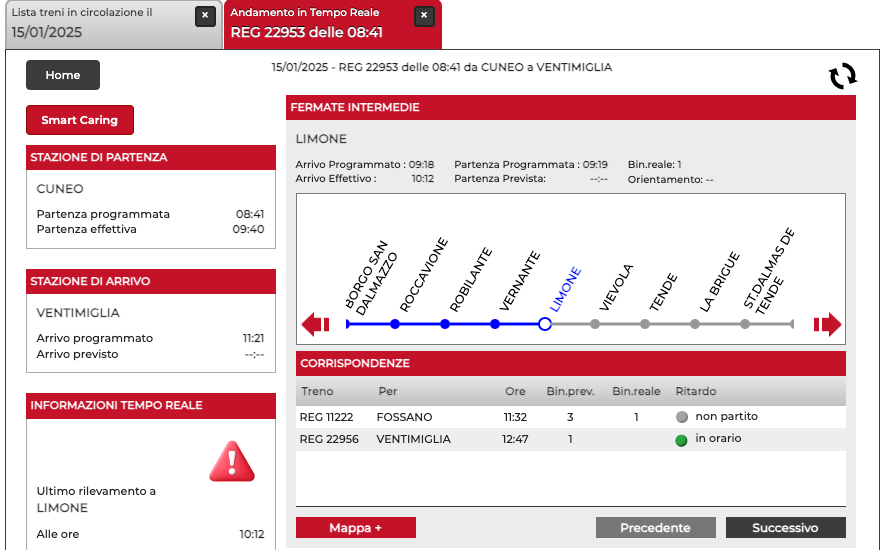 Ieri non è partita la corsa delle 7,24 da Cuneo per Torino, oggi è partita con un'ora di ritardo quella da Cuneo verso Ventimiglia.