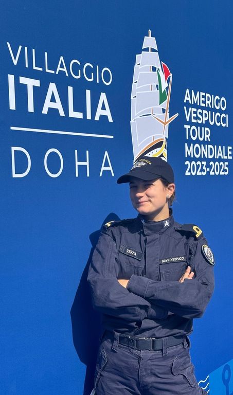 Determinata a vivere l'esperienza del Tour Mondiale di Vespucci, dopo una serie di esperienze su navi militari a dicembre 2024 e grazie al suo percorso di studi, viene assegnata al Vespucci con l’incarico di Public Affairs Officer, con partenza dal porto di Karachi in Pakistan.