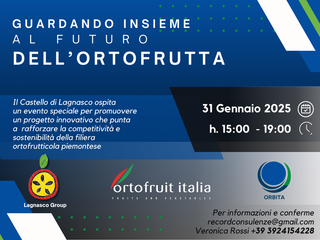 L'incontro, promosso da Lagnasco Group Soc. Coop. a.r.l. e Ortofruit Italia Soc. Agr. Coop. OP, avrà come obiettivo quello di presentare la nuova realtà pensata per rilanciare e innovare la filiera ortofrutticola piemontese e italiana, sia a livello nazionale che internazionale. Il progetto ORBITA SB è aperto a chiunque condivida i suoi valori e obiettivi, con l’intento di generare valore e sviluppo per il territorio attraverso diverse linee di azione: