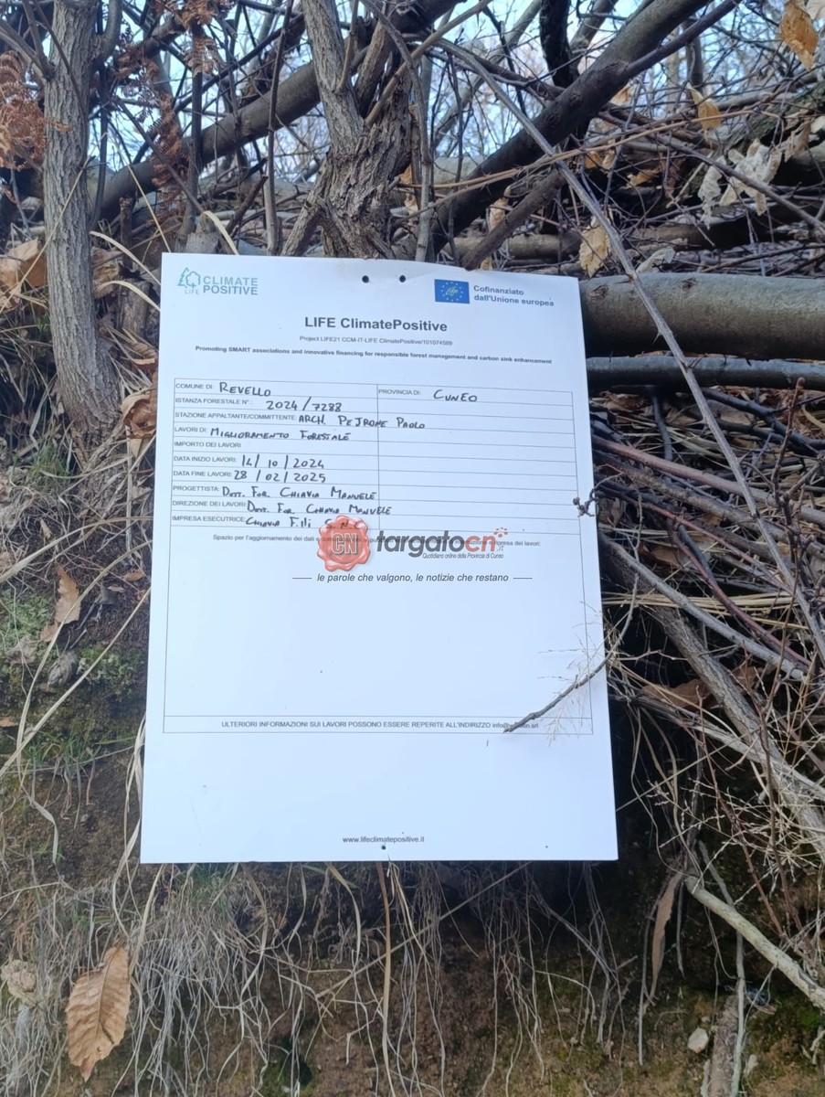 Più che un intervento di manutenzione boschiva o – come viene definito da un cartello apposto in loco – di “miglioramento forestale”, una devastazione. O almeno, così un nostro lettore anonimo definisce l’attività realizzata sulla boscosa collina di Revello nell’ambito del progetto LIFEClimate Positive.