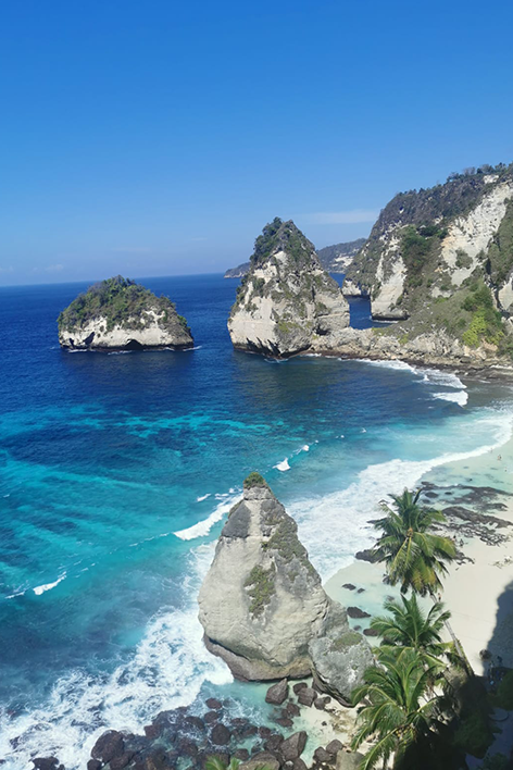 Ho deciso di suddividere il viaggio in tappe, per vivere ogni aspetto dell’isola. Sono partito da Ubud, che è il cuore spirituale e culturale di Bali, dove ho respirato un’atmosfera di pace tanto attesa; cascate e templi sono stati una cornice meravigliosa, per vivere momenti d’introspezione unica. Dopo, mi sono spostato a Nusa Penida, una piccola isola vicina, famosa per i suoi panorami selvaggi e le scogliere spettacolari come la famosa “T-Rex”. Si chiama così perché dall’alto, la forma, ricorda una gigantesco scheletro preistorico, la sensazione di essere li è stata suggestiva e quasi intima. Infine, sono tornato sull’isola principale, a Kuta, per concludere il viaggio in un’atmosfera più vivace e frizzante, perfetta per conoscere anche l’altro lato del Paese.
