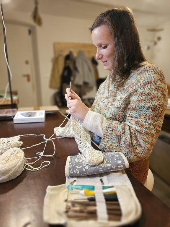 “L’uncinetto è come il ballo: più provi, più cadi e ti rialzi, più diventi bravo!” mi dice Martina mentre entriamo nel suo laboratorio con vista sulle montagne. Il suo piccolo, grande regno.