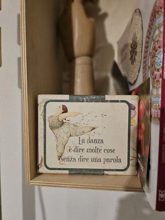 Le sue mani, abituate alla danza, ora danzano con i fili e gli aghi. I primi maglioni prendono forma: creazioni rudimentali, fatte per sé, ma che risvegliano la sua anima artistica e creativa.