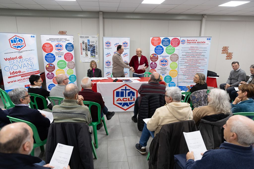 A seguire si è svolta la presentazione, da parte della vice presidente provinciale, Mariangela Tallone, dell’iniziativa della mostra “Libera Azione”, realizzata in concomitanza con gli 80 anni della Liberazione, dall’associazione “Insieme” e dai “Cavalieri delle Langhe”, con la partecipazione attiva delle Acli provinciali, che hanno organizzato, tra gli eventi collaterali, la presentazione di quattro libri su personalità del mondo religioso e civile, che hanno dato un grande contributo durante la Resistenza. I testi saranno presentati al Museo Casa Galimberti di Cuneo alle ore 18: il 28 febbraio: Il prete dei ribelli, di Albino Morantini; il 14 marzo: “Resistenza Svelata” di Daniele La Corte; l’11 aprile: “Don Antonio Borsotto, Giusto di Israele” di Luca Lanave; il 29 aprile: “Tancredi Dotta Rosso, mio padre” di Margherita Dotta Rosso.