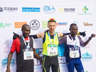 Vittoria in casa: vince la Mezza del Marchesato tra i frutteti del Monviso Marco Moletto della Atletica Saluzzo con il tempo di 1h.06’.23” seguito dai due kenioti Martin Cheruiyot (1h 06’36”) della FFIAAF ed Enos Kales Kakopil con il tempo di 1h. 06. 37” della stessa scuderia. ( foto Paola Ravazzi)