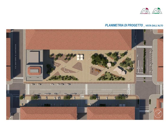 “Il nuovo progetto ha eliminato il viale alberato che era stato previsto nel PFTE così da dare una visione completa della piazza – chiarisce Pellegrino - . Infatti, il viale alberato che riprendeva le linee regolari della nostra città andava però, anche a livello di percezione visiva, a dividere la piazza in tre aree distinte e separate. Il sagrato vero e proprio, Corso Nizza e il parcheggio sul lato di Gesso. La disposizione attuale degli alberi invece permette una visione complessiva, con una grande piazza unica con gli alberi a fare da contorno. Le piante previste lungo il corso sono state riposizionate verso i palazzi, in modo che il numero complessivo resti di 48 piante, come previsto sul PFTE”.