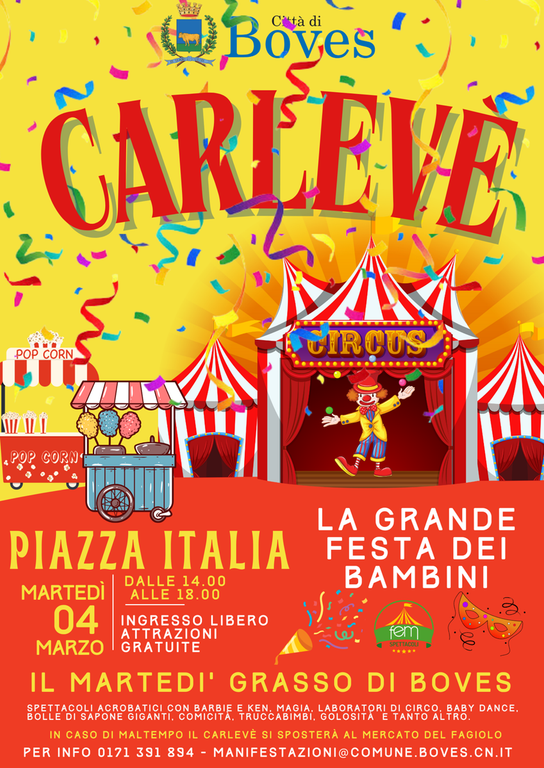 Martedì 4 marzo torna a Boves una delle feste più amate dai bambini e dalle famiglie: il grande Carnevale bovesano.
