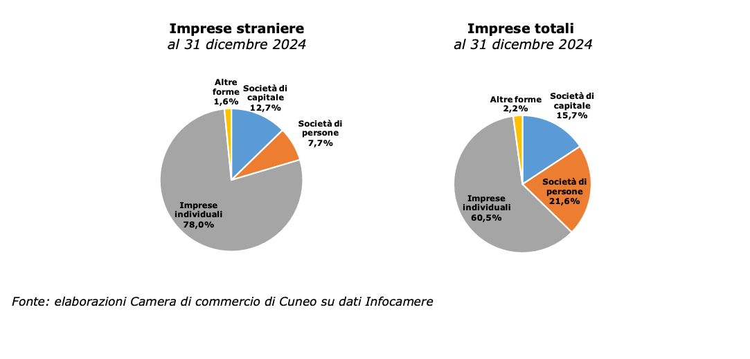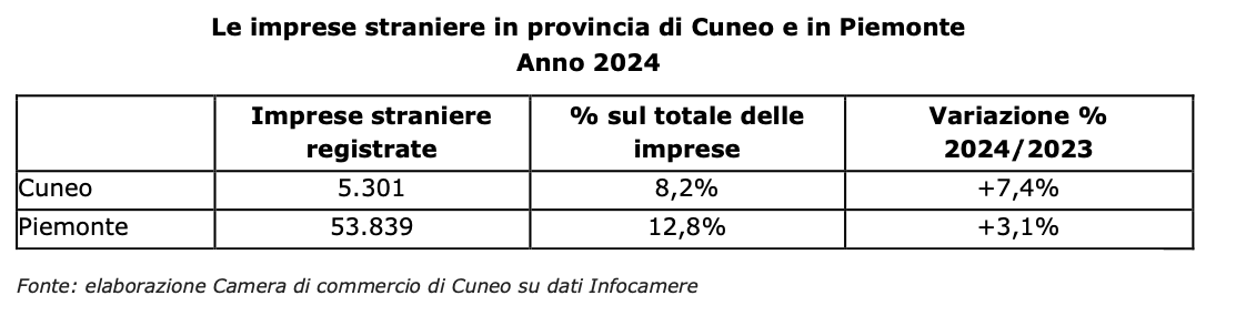 Nel 2024 il numero delle imprese straniere è aumentato in misura significativa, largamente superiore alla crescita in Piemonte e nel resto del Paese, seguendo un trend consolidato che, negli ultimi dieci anni, ha visto aumentare del 38% il numero delle imprese straniere nella nostra provincia - afferma il Presidente Luca Crosetto -. In alcuni settori la presenza straniera è ormai determinante e risponde a esigenze specifiche della nostra comunità, portando un contributo essenziale non soltanto alla crescita economica ma anche dal punto di vista della coesione sociale e dell'integrazione culturale".