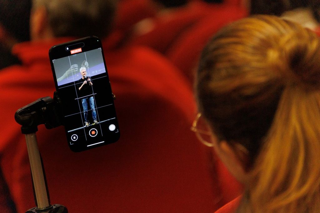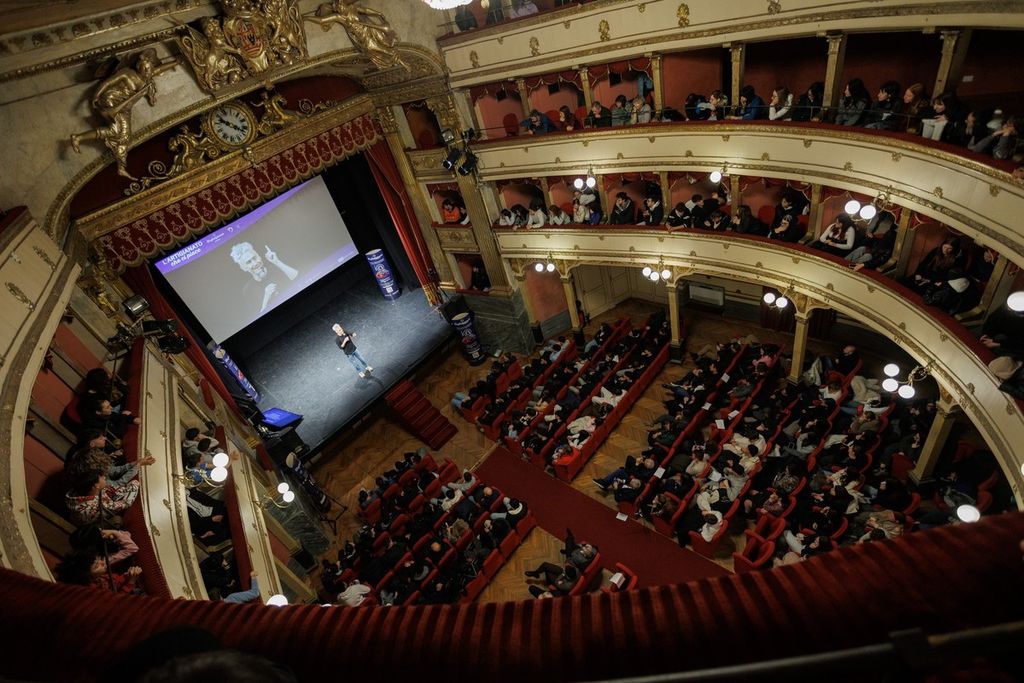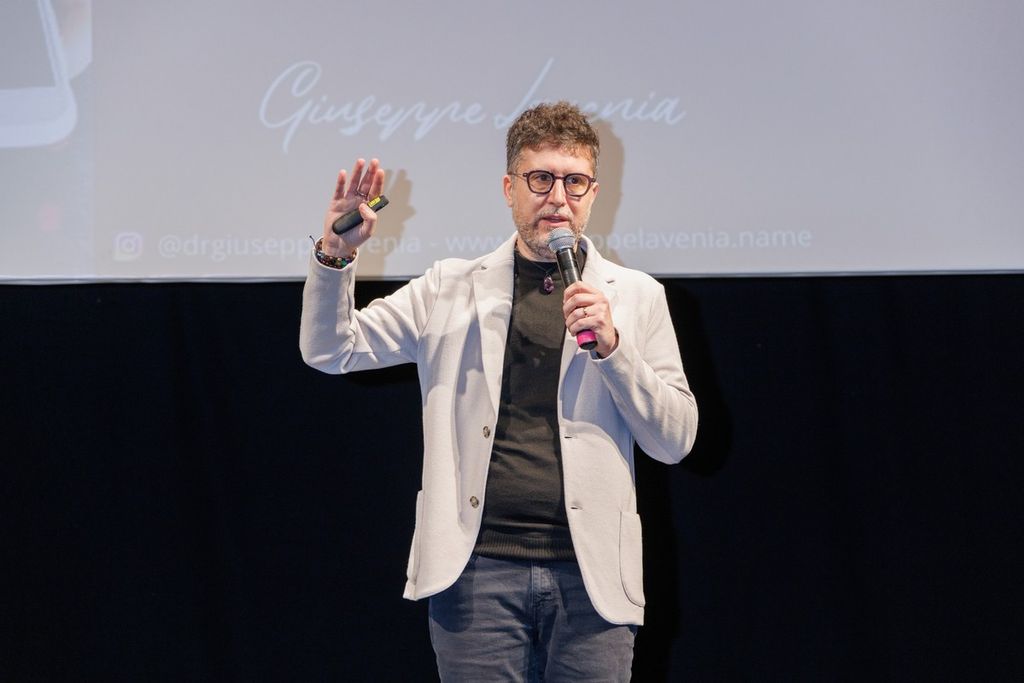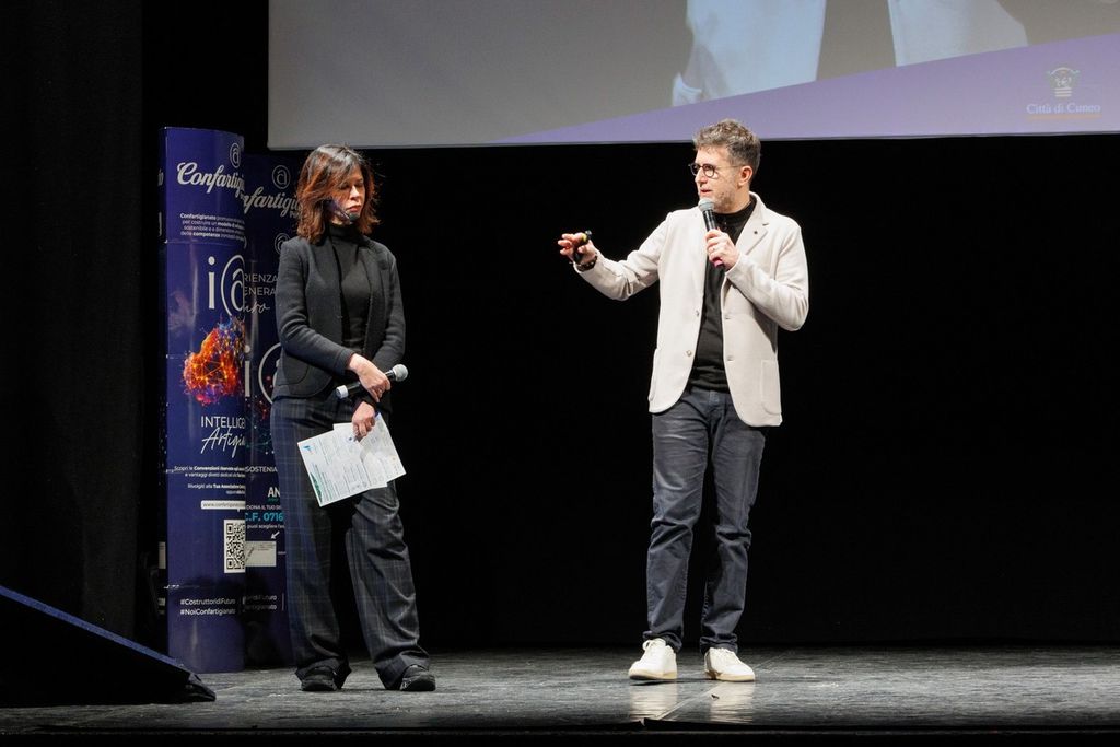 Dopo i saluti delle autorità presenti – la Sindaca di Cuneo Patrizia Manassero, la presidente di Donarti Daniela Minetti, il consigliere di Fondazione CRC Mauro Bernardi e il presidente di Banca di Caraglio Livio Tomatis – e del presidente di Confartigianato Imprese Cuneo e Camera di Commercio di Cuneo Luca Crosetto, ad introdurre l’ineffabile comunicatore è salito sul palco Giuseppe Lavenia psicoterapeuta, esperto di benessere digitale e divulgatore scientifico insieme a Micaela Palmieri giornalista del TG di Rai1.