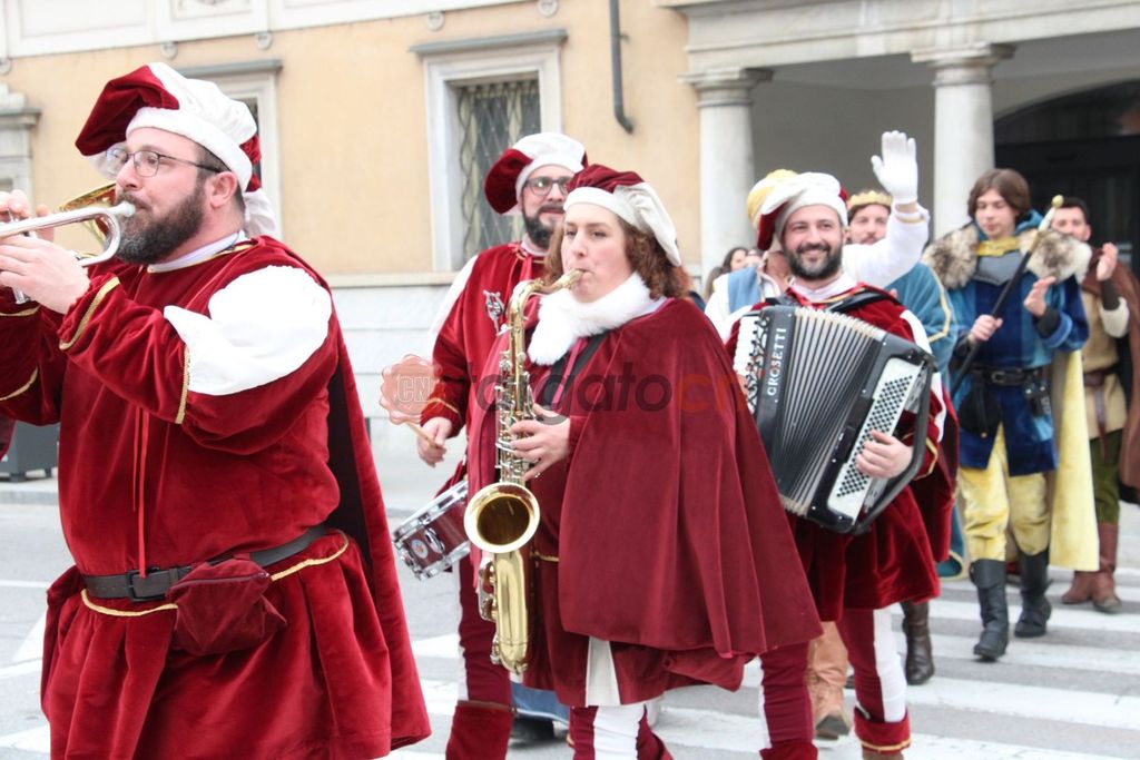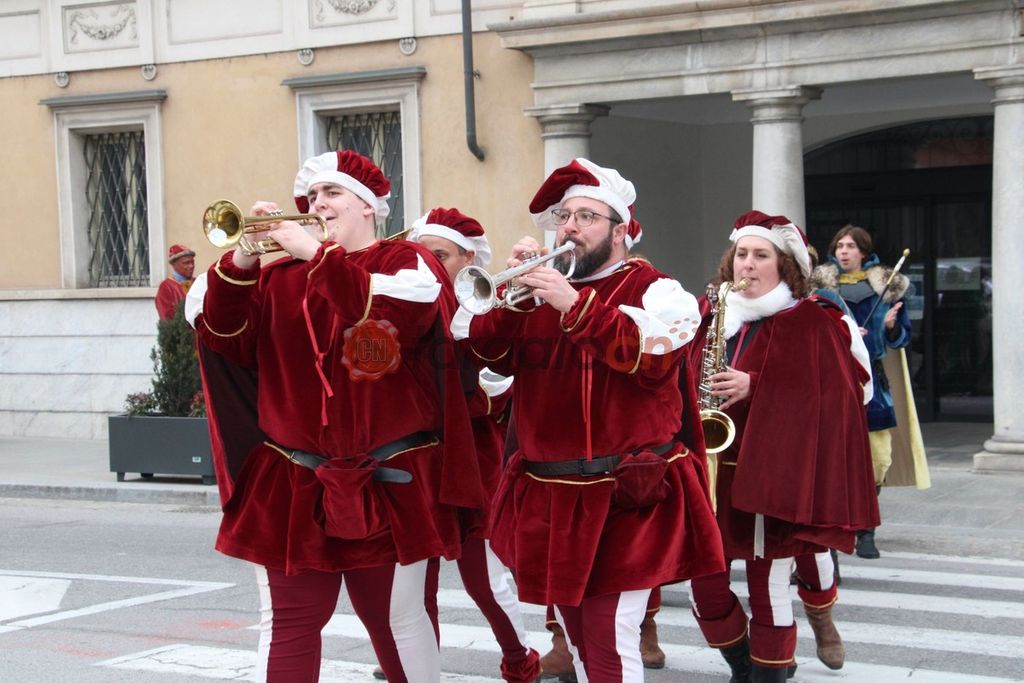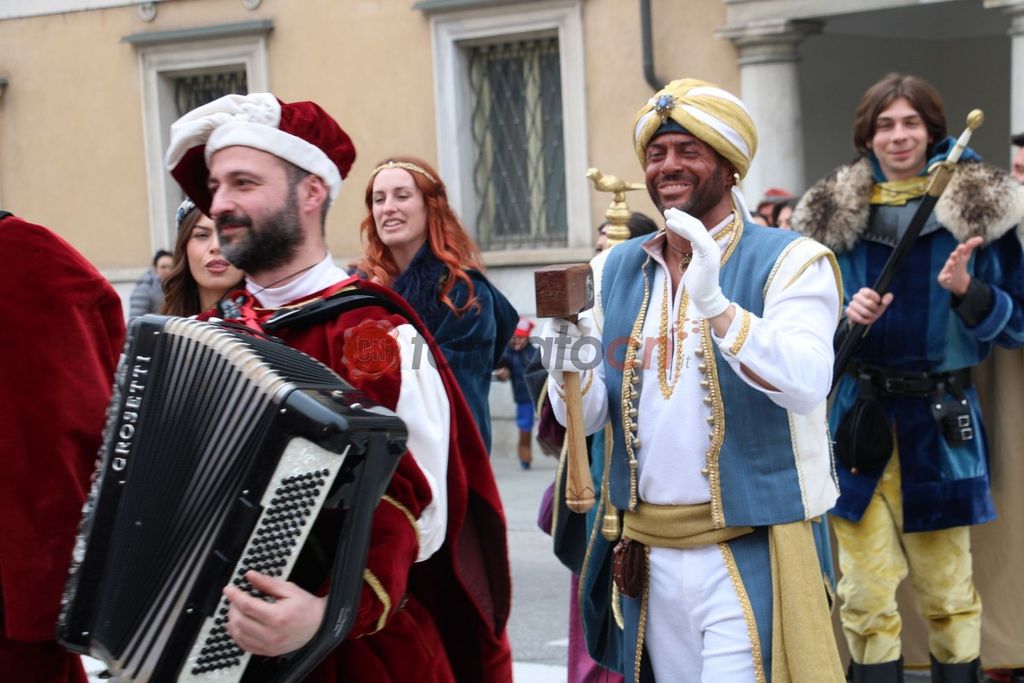 Dopo la sfilata nel centro storico di Breo, le maschere, con la Corte del Moro, hanno preso la funicolare e raggiunto il rione alto della Città per la consegna ufficiale delle chiavi nella splendida sala del circolo di lettura.