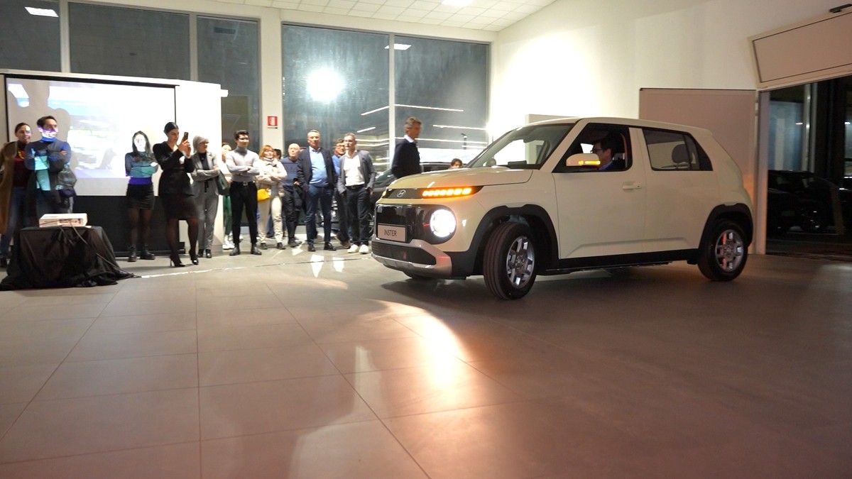 Dopodiché il momento tanto atteso: la Inster è stata svelata. È stato tolto il velo che la copriva e un grande applauso ha palesato l’apprezzamento e lo stupore per un’auto dal design e dalle caratteristiche decisamente all’avanguardia. E dopo pochi istanti hanno fatto ingresso nel salone altri due modelli di Inster, per dare a tutti la possibilità di ammirare interni ed esterni, spazi e forme dell’auto e per chiedere informazioni ai consulenti esperti di mobilità elettrica di Hyundai Vela.
