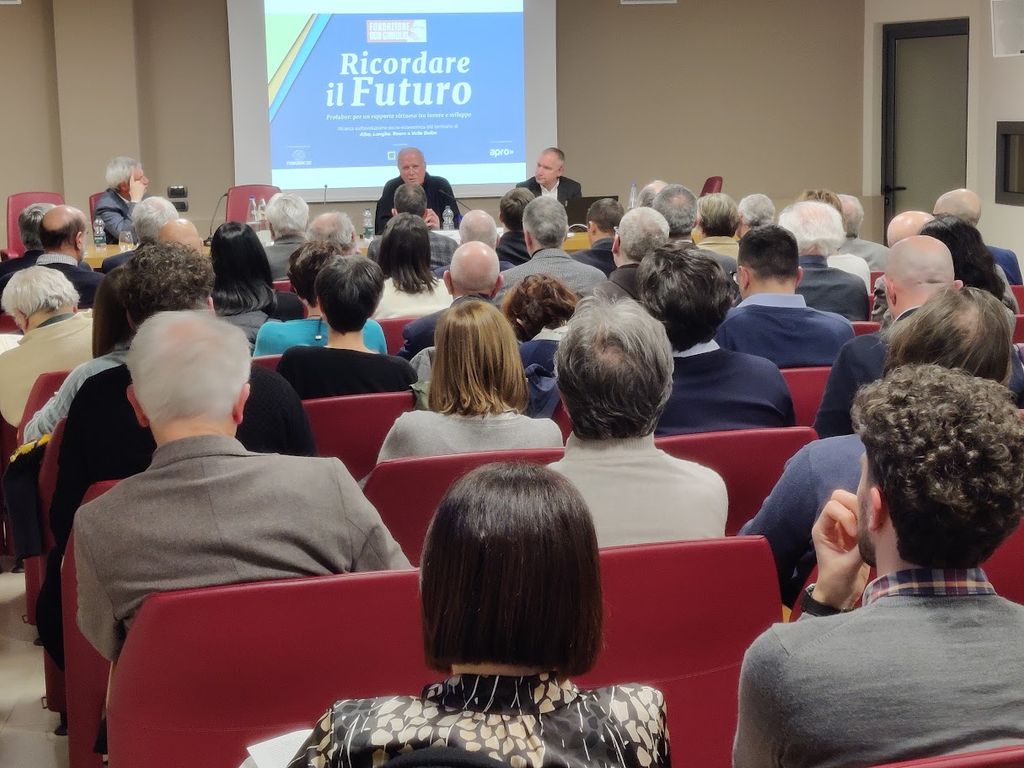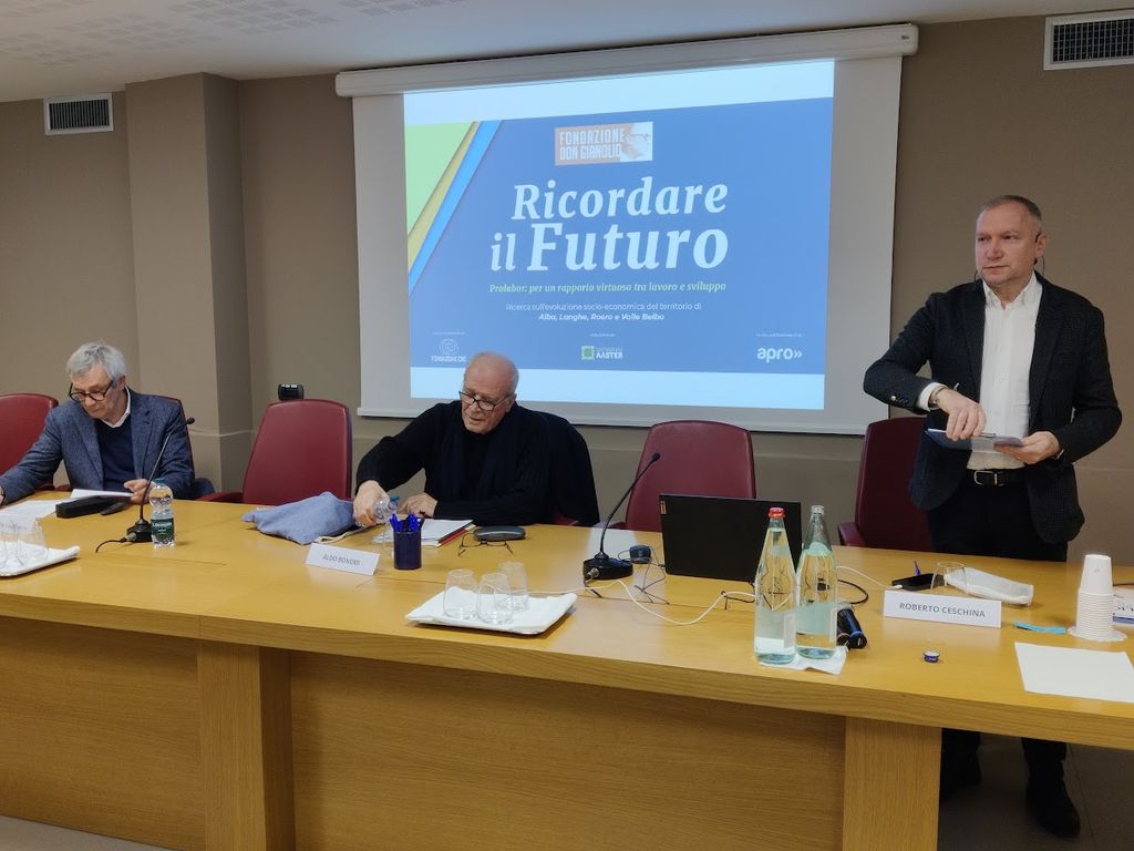 Un partecipato convegno, organizzato dalla Fondazione Don Gianolio in collaborazione con Apro Formazione, ACA, Consorzio Aaster e Fondazione CRC, ha avuto luogo ieri sera, mercoledì 26 febbraio, nei locali dell’Associazione Commercianti Albesi. Con un titolo “Ricordare il futuro” che è una contraddizione di termini, quasi un ossimoro, si è voluto ragionare su ciò che è stata l’evoluzione socio-economica del territorio di Alba, Langhe, Valle Belbo e Roero, partendo da una ricerca del Consorzio Aaster, commissionata dalla Fondazione Don Gianolio su stimolo della direzione di Apro Formazione, la più importante realtà formativa professionale dell’albese.