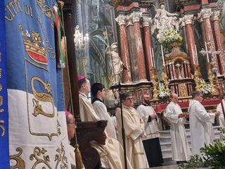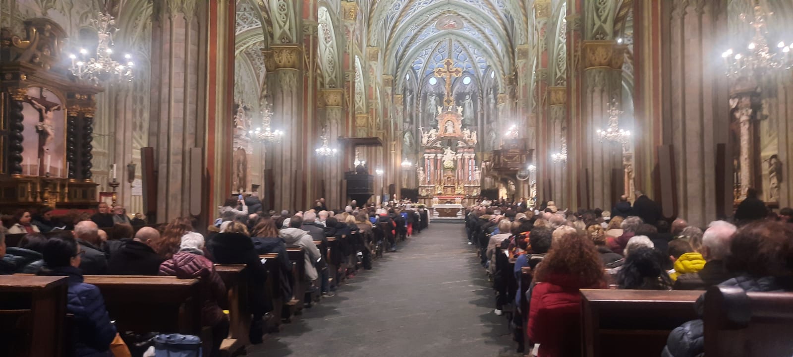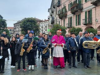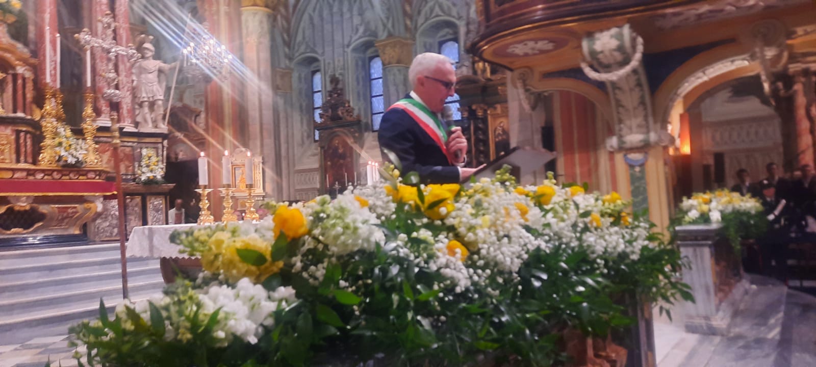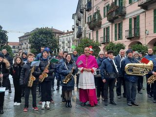 L'applauso della folla lo ha accompagnato fuori dal duomo, dove prima era stato accolto con lo stesso calore e simpatia al suono della Banda cittadina.