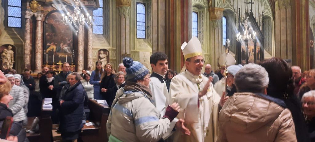 Il nuovo vescovo ha quindi attraversato tutta la cattedrale per portare la sua prima benedizione ai fedeli presenti.