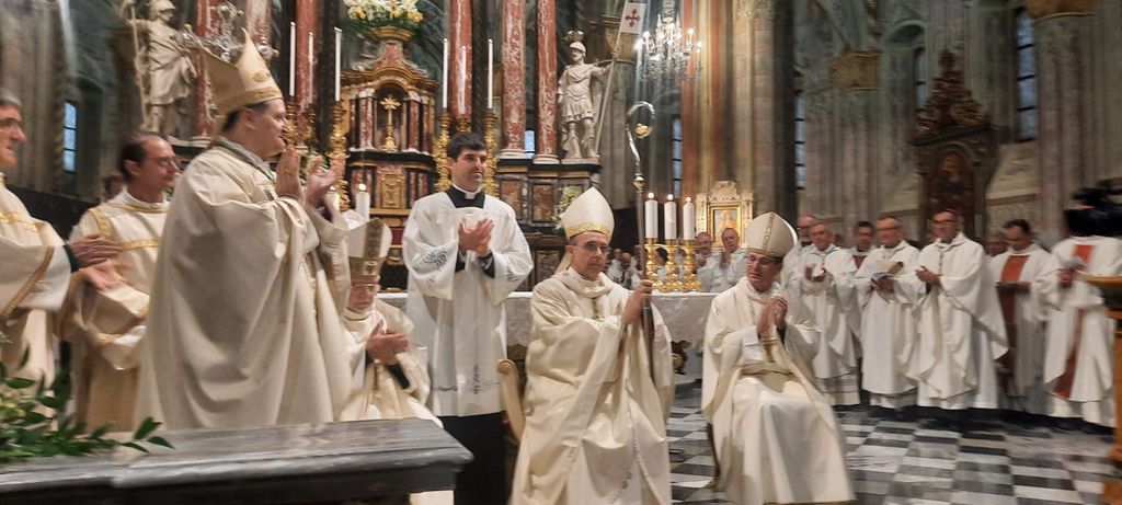 Don Bernardino ha assunto gli impegni da vescovo nella cattedrale saluzzese dove fu ordinato sacerdote nel 2001, durante una cerimonia solenne accompagnata da canti e pagine di musica a cura del Coro della Comunità Il Cenacolo di Madre Elvira.