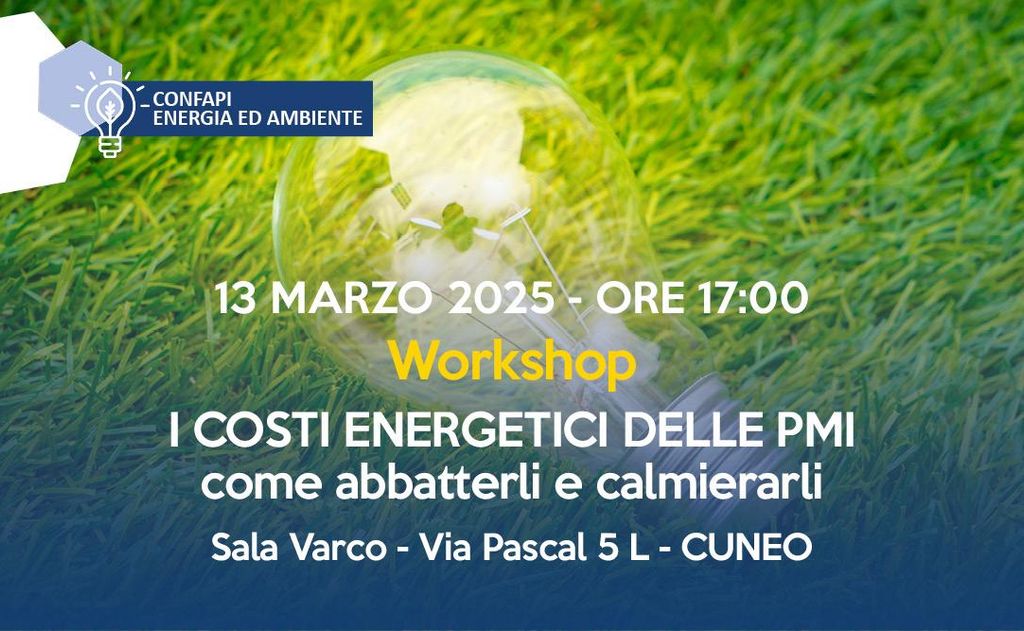 “I costi energetici delle pmi, come abbatterli e calmierarli”, questo il titolo del workshop proposto da Confapi Cuneo per giovedì 13 marzo nella Sala Varco a Cuneo in via Pascal 5L.