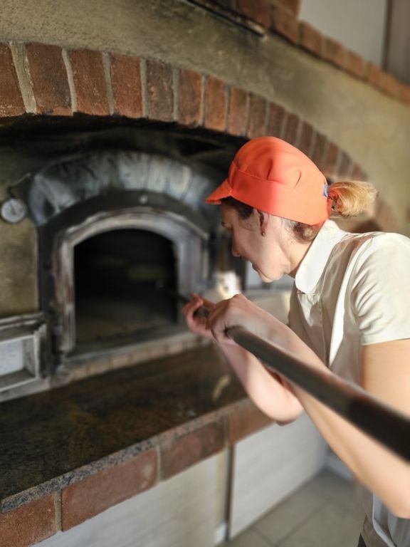 Rimango affascinata dal grande forno a legna, il vero protagonista di ogni cottura.