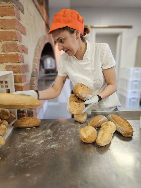 Quando entro nell’Agripanetteria "Chicchi di Tradizione", (https:www.instagram.com/chicchiditradizione) il sole sta sorgendo. Apro la porta del laboratorio e il profumo del pane appena sfornato mi inebria le narici. Vittoria mi accoglie con una stretta di mano decisa, un cappello arancione, una casacca da chef e una grinta pazzesca, nonostante sia sveglia da ore. Il grande forno a legna, tre metri per tre, è acceso e scalda l’ultima infornata di pane, che aspetta solo il mio arrivo per essere sfornata.