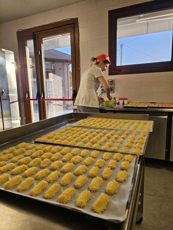 “Mi alzo alle tre dal martedì al sabato” racconta Vittoria. “Impasto subito acqua, farina e lievito, perché il mio è un pane semplice, senza additivi. Mentre tutto lievita, porto avanti le altre preparazioni: biscotti, grissini, torte, focacce e, nei periodi speciali, bugie, colombe o panettoni”.