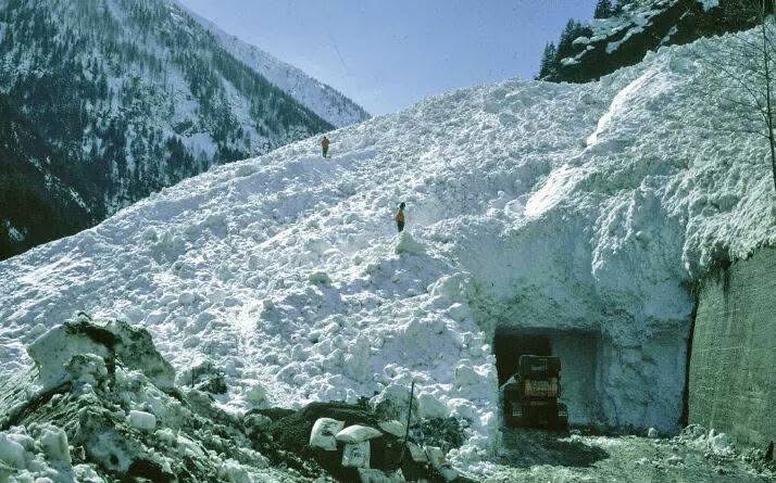 [La galleria scavata dentro la valanga per poter ripristinare il collegamento viario]
