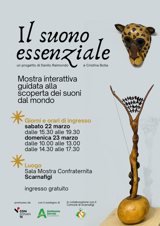 In occasione del 18 marzo 2025, la giornata globale del riciclo, CONsonanTe e Danilo Raimondo, in arte “Artigiano del Suono”, propongono presso la Sala Mostra Confraternita di Scarnafigi la mostra “Il Suono Essenziale”, un percorso didattico museale pensato per suscitare interesse verso la consapevolezza ambientale e la creatività musicale.