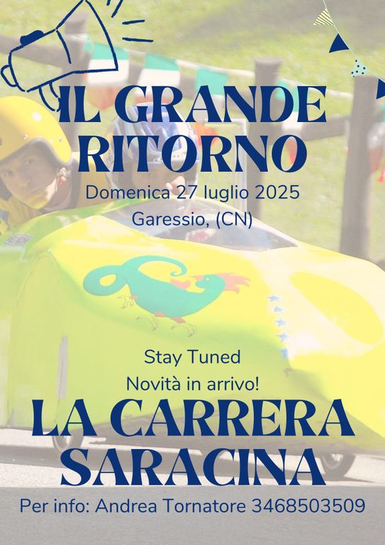 Grande ritorno a Garessio per la Carrera Saracina, storica competizione nata nel 1967, che vede i concorrenti sfidarsi in velocità a bordo di carretti personalizzati.