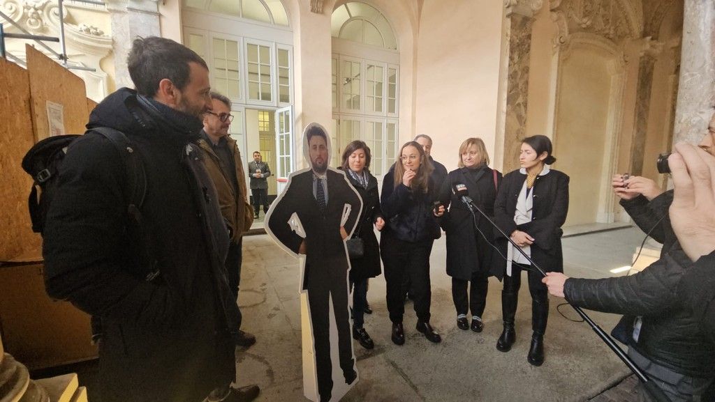 L'assessore regionale alla Sanità Federico Riboldi dà per l'ennesima volta "buca" alla minoranza, che per protesta decide di "evocarlo" sotto forma di cartonato. È questa la protesta a cui hanno deciso di dar vita il M5S, Partito Democratico, Alleanza Verdi Sinistra e Stati Uniti d'Europa questo pomeriggio nell'ingresso di Palazzo Lascaris.