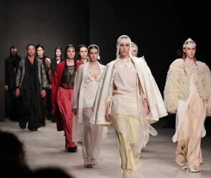 Il brand Ante Kovac ha svelato la sua collezione “Dragon Fly”, che rappresenta una vivida storia di incontro tra il “protagonista” e il “drago”, che culmina con l'emergere di una terza forza potente. La sfilata ha affascinato il pubblico con la sua miscela creativa di stampe di pitone e coccodrillo, resa ancora più interessante da un ospite speciale in prima fila: il famoso campione di scacchi Hans Niemann.