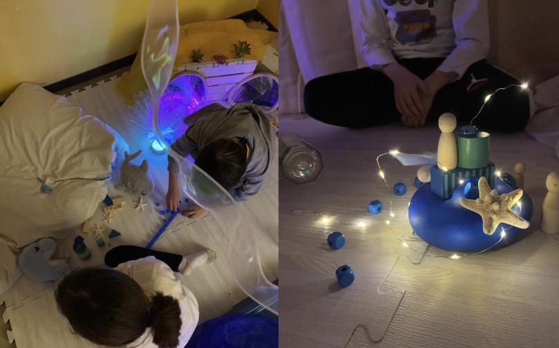 Lo spazio è stato strutturato da due insegnanti, le quali hanno conseguito la formazione Snoezelen, di primo e secondo livello, presso la cooperativa sociale “Insieme a Voi” di Busca.