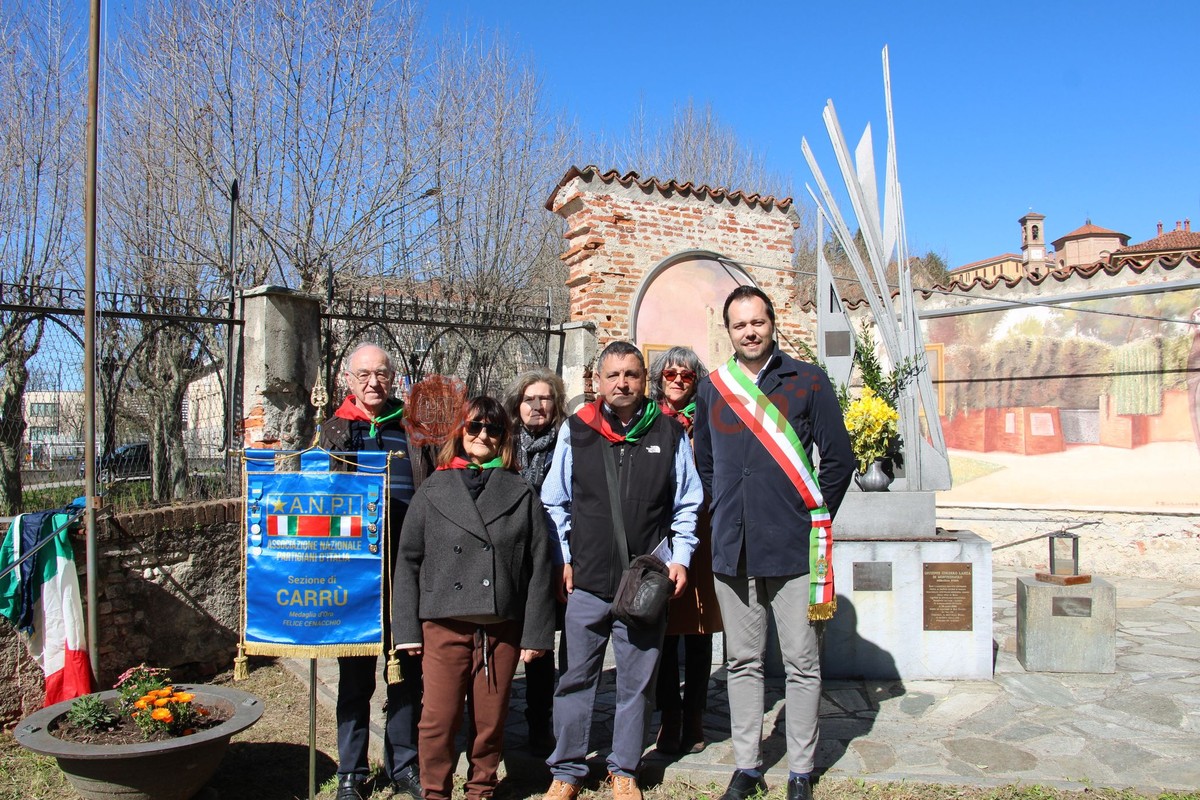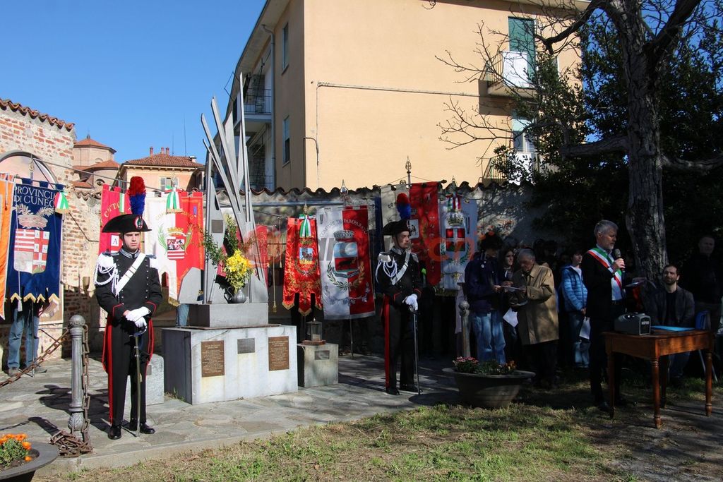 Ha offerto i fiori per il monumento a Montezemolo e d’Acquisto, realizzato su bozzetto dell’artista cuneese Giovanni Gagino, la prof.sa Maria Luisa Garelli, figlia del martire di Mauthausen, avv. Piero Garelli. A introdurre gli interventi della giornata è stato Giulio Toppino, studente del liceo "Vasco Beccaria Govone".