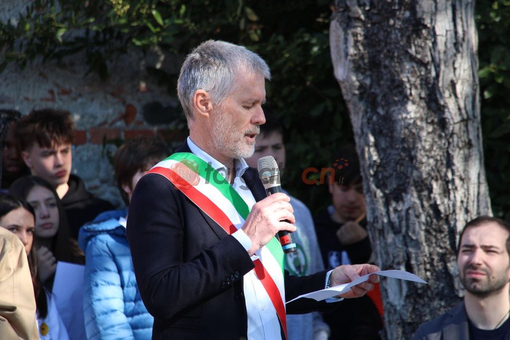 Il professor Stefano Casarino, presidente dell'ANPI Mondovì ha poi invitato il pubblico a riflettere su tre termini: "Ricordare: la memoria è l'unico antidoto, l'unico farmaco contro l'ignoranza e la violenza. La seconda parola è invece imparare: la storia è "magistra viate", solo che noi siamo dei pessimi studenti. Mi vengono in mente le parole di George Santayana, incise sul monumento all'ingresso del campo di concentramento di Dachau e tradotte in trenta lingue "Chi non ricorda il passato è condannato a ripeterlo". L'ultima parola è applicare: gli insegnamenti appresi, passare dalla teoria alla pratica, opponendosi ad ogni forma di autocrazia, difendendo la democrazia che è fragilissima. Tutto ciò è difficile quanto essenziale se vogliamo continuare a essere uomini liberi e non sudditi. Ora e sempre Resistenza".