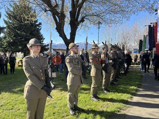 È stato poi letto un messaggio che il Ministro della Difesa Guido Crosetto ha voluto rivolgere ai presenti: "Viviamo un'epoca complessa, in cui la libertà e la democrazia non possono mai essere date per scontate. E quindi nostro dovere ricordare e onorare chi ha sacrificato la propria vita per un bene più grande. Custodire la memoria di questi avvenimenti significa comprendere il passato, ed è l'unico modo per costruire un futuro migliore. Pur non potendo essere presente, desidero inviare un caloroso saluto alle Autorità civili e militari, ai rappresentanti delle Istituzioni e agli studenti. Auspico che questa cerimonia sia un momento di profonda commemorazione e riflessione, un ponte tra il nostro passato e il futuro. Che la memoria di chi ba servito la Patria con onore ci ispiri a costruire un domani di pace e solidarietà, fondato sui valori democratici".