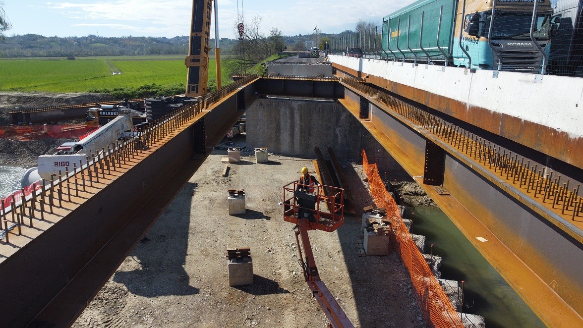 Anas ha varato le travi in acciaio del nuovo viadotto al km 1 della Tangenziale di Asti - Statale 231 “di Santa Vittoria” lungo la carreggiata in direzione Asti. Il varo delle travi metalliche è stato effettuato tramite autogru e sono già state avviate le operazioni di allestimento dell’impalcato.