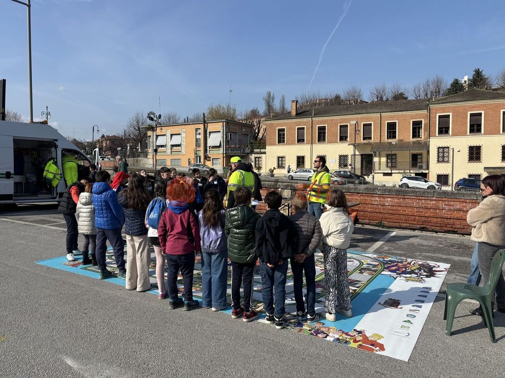 Imparare a rispettare le regole del codice della strada divertendosi. Questo l'obiettivo dell'iniziativa "Andiamo sul sicuro" che si è svolta questa mattina, giovedì 3 aprile, in piazza Ellero.