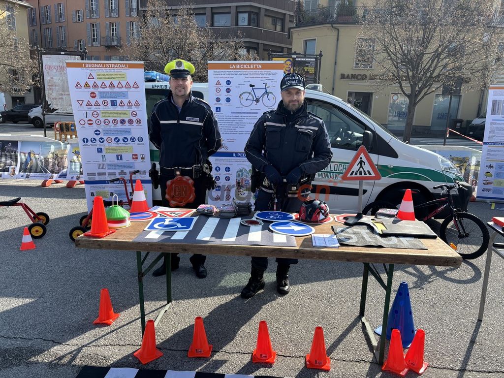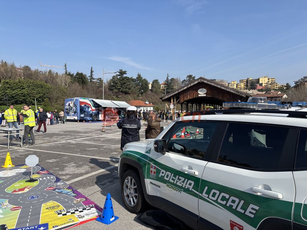 In piazza Ellero gli alunni hanno avuto modo di "fare lezione" sul pullman azzurro della Polizia di Stato, aula multimediale itinerante dove i poliziotti della Stradale diventano “maestri di sicurezza” proponendo ai più piccoli giochi a tema, filmati e cartoni animati per imparare le regole della sicurezza; poi con il gruppo dell'Autostrada dei Fiori, presente con un mezzo attrezzato con la segnaletica che viene utilizzata per la viabilità, hanno provato il tappeto "Autostradopoli" e "la ruota della sicurezza" per far scoprire i rischi che si corrono quando non si rispettano le norme del codice della strada.