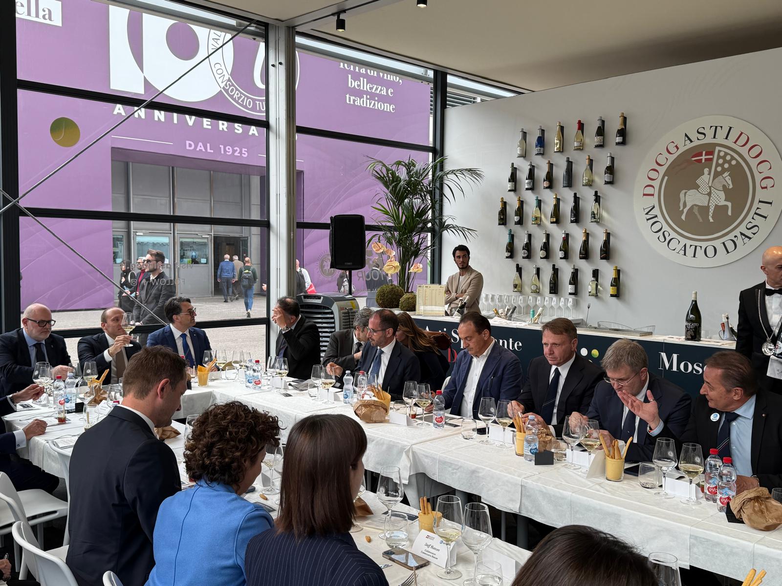 Si è tenuto oggi a Vinitaly presso lo stand del Consorzio dell’Asti Docg l’incontro tra il commissario europeo per l’Agricoltura e lo sviluppo rurale Christophe Hansen, il commissario europeo per la Salute e il benessere degli animali Olivér Várhelyi, il ministro dell’Agricoltura e della sovranità alimentare Francesco Lollobrigida, i principali esponenti politici della Regione Piemonte, tra cui il presidente Alberto Cirio e l’assessore all’agricoltura Paolo Bongioanni, oltre alle voci delle principali realtà consortili regionali riunite sotto il cappello di Piemonte Land of Wine.