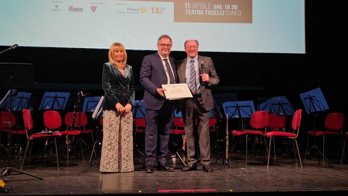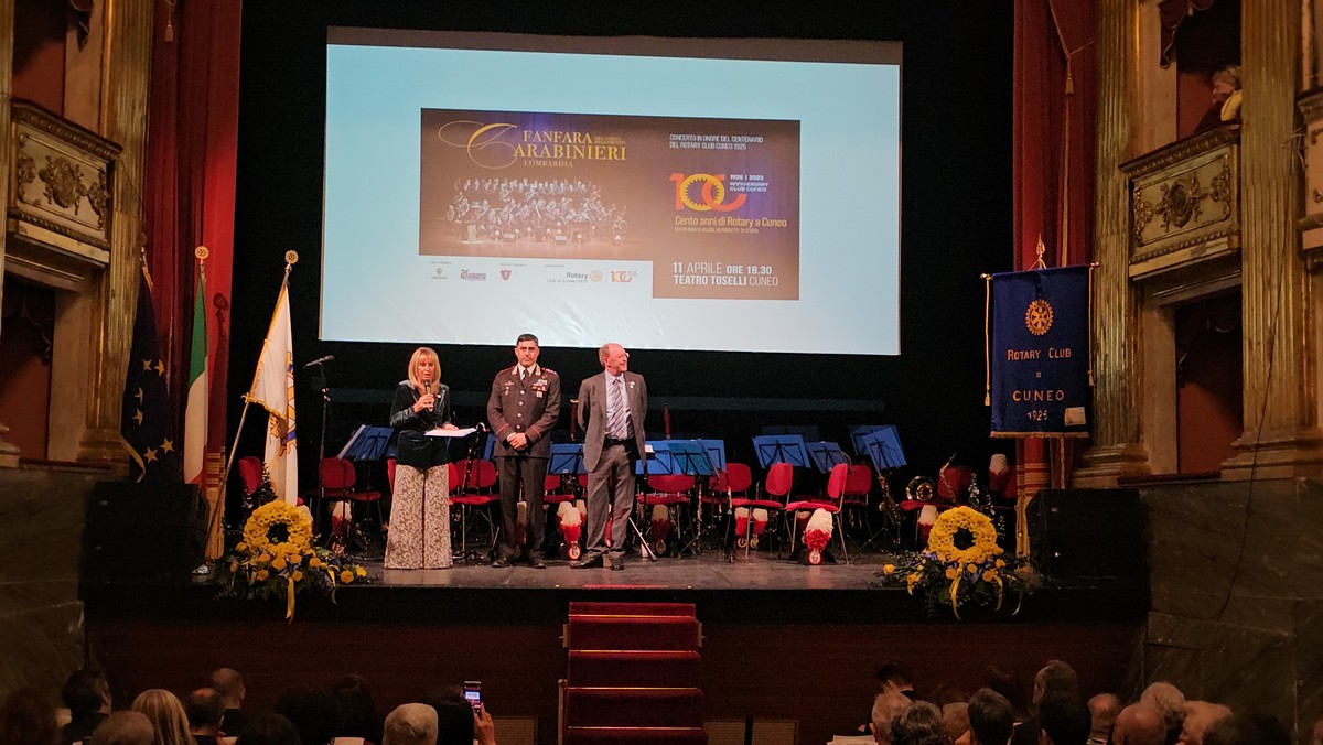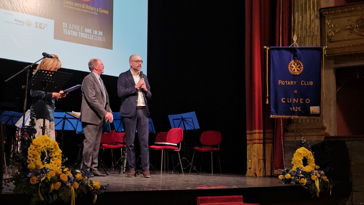 Teatro Toselli al completo, venerdì 11 aprile, per i cento anni del Rotary Club Cuneo 1925.