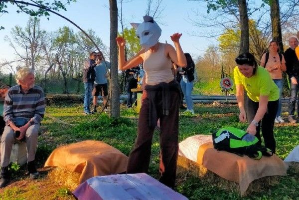 A seguire un’esperienza condotta dal Teatro Selvatico, con esercizi di mindfulness e somatici, che hanno permesso ai partecipanti di entrare in sintonia con il paesaggio circostante e di liberarsi dalle sovrastrutture quotidiane, riscoprendo il proprio lato animale. Sono state anche realizzate delle maschere, che hanno aiutato i partecipanti a far emergere alcuni lati del proprio io che solitamente rimangono sopiti.