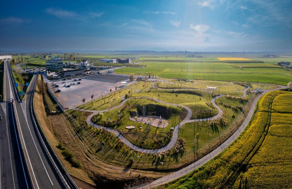 L’area verde, da ieri fruibile e aperta al pubblico, si estende su 20.000 mq alle spalle dell’azienda di Roreto di Cherasco ed è stata progettata dallo studio Bengala Landscape, con grande attenzione alla scelta delle varietà di piante (9500, quasi una ogni abitante di Cherasco), di 70 specie diverse, tra alberi, arbusti e tappezzanti, inseriti in un ambiente vario e dinamico, e in grado di fornire scorci diversi in ogni momento dell’anno e della giornata.