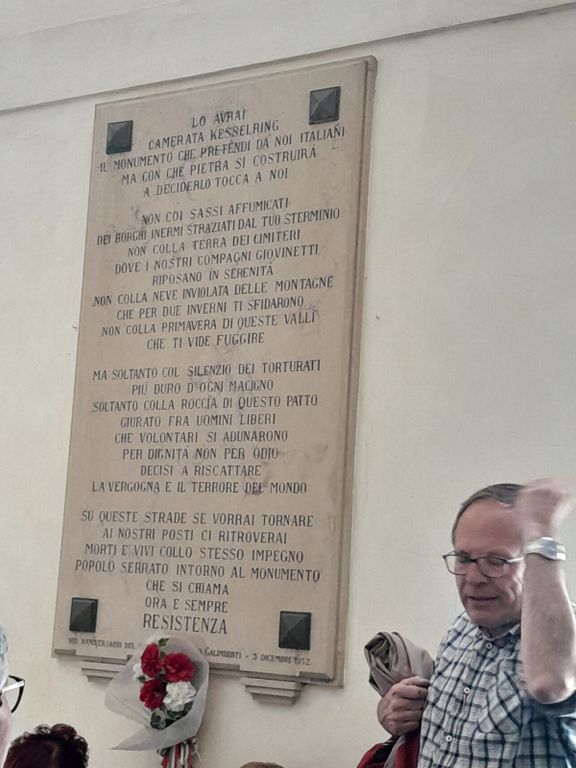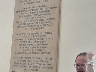 Successivamente, arriviamo al Palazzo Comunale e, precisamente, osserviamo la lapide commemorativa con incise le parole di Piero Calamandrei sulla Resistenza, situata sullo scalone del Municipio, per ricordare il suo significato della libertà e della democrazia.