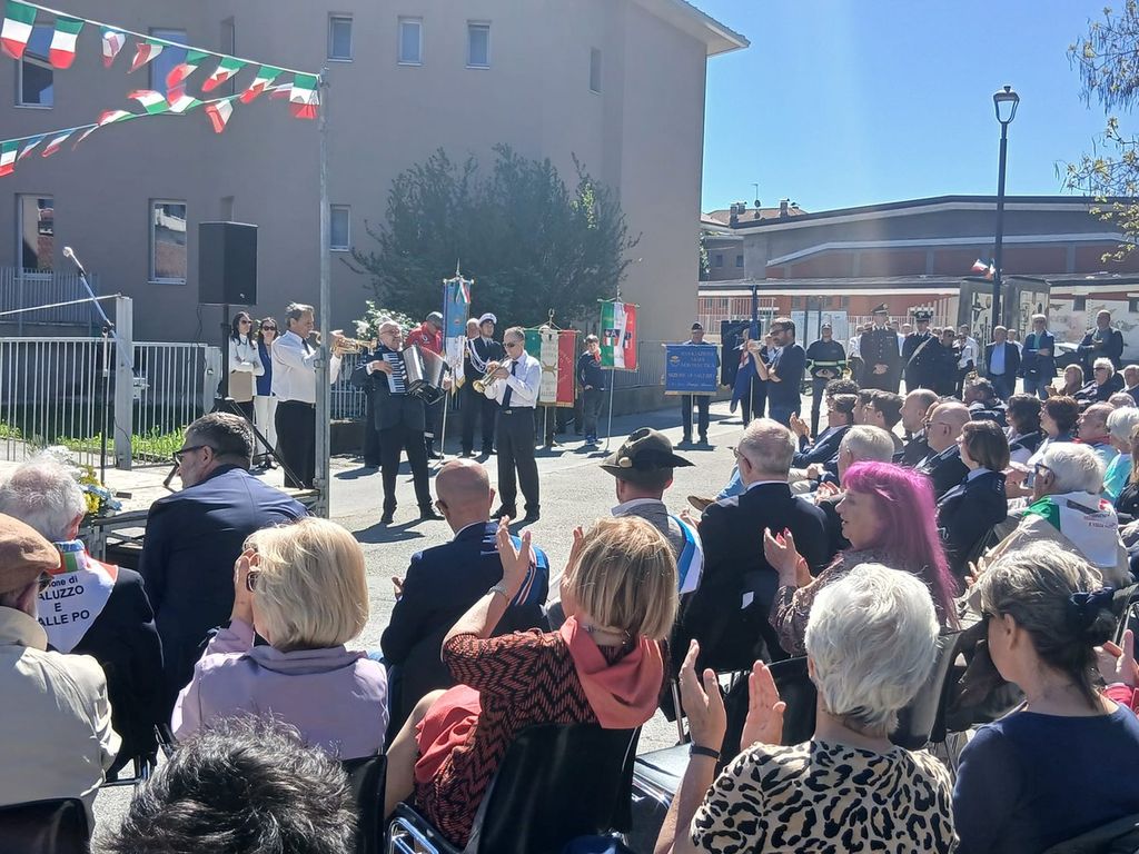 La pergamena è stata consegnata al sindaco Franco Demaria, al prosindaco del municipio di Castellar Eros Demarcchi e agli ex sindaci delle due comunità presenti. Per Castellar Liliana Borretta e Giuliano Ruatta, per Saluzzo: Michelino Culasso, Paolo Allemano e Mauro Calderoni. Hanno partecipato alla cerimonia del 25 Aprile l'onorevole Chiara Gribaudo e per la Provincia il consigliere Silvano Dovetta.