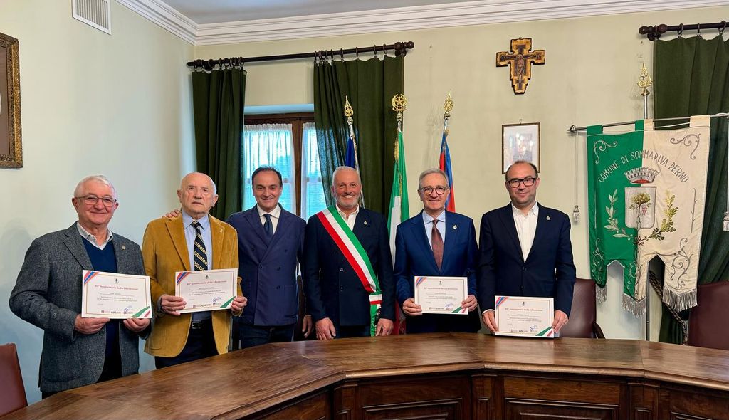 Questa mattina a Sommariva Perno i sindaci emeriti Mario Bertolusso, Andrea Cane, Simone Torasso e Walter Cornero sono stati festeggiati e omaggiati per l’impegno profuso a “garantire la democrazia”, durante una breve cerimonia organizzata dall’attuale primo cittadino Stefano Rosso, a cui ha partecipato anche il Governatore del Piemonte Alberto Cirio.