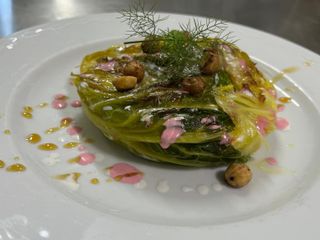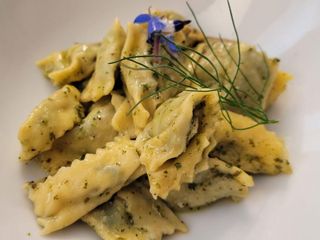 E non è solo un modo di dire. All’Osteria del Castello ogni ingrediente ha una storia. La carne arriva solo da aziende agricole selezionate. Le uova, le farine, le verdure, i salumi: tutto ha origine biologica certificata. Anche le erbe spontanee sono raccolte a mano da chef Paolo stesso nei dintorni del borgo. Ortiche, tarassaco, borragine: ingredienti poveri, ma profondi, che si trasformano in fettuccine, ripieni o aromi. È la cucina contadina, che sa essere elegante.