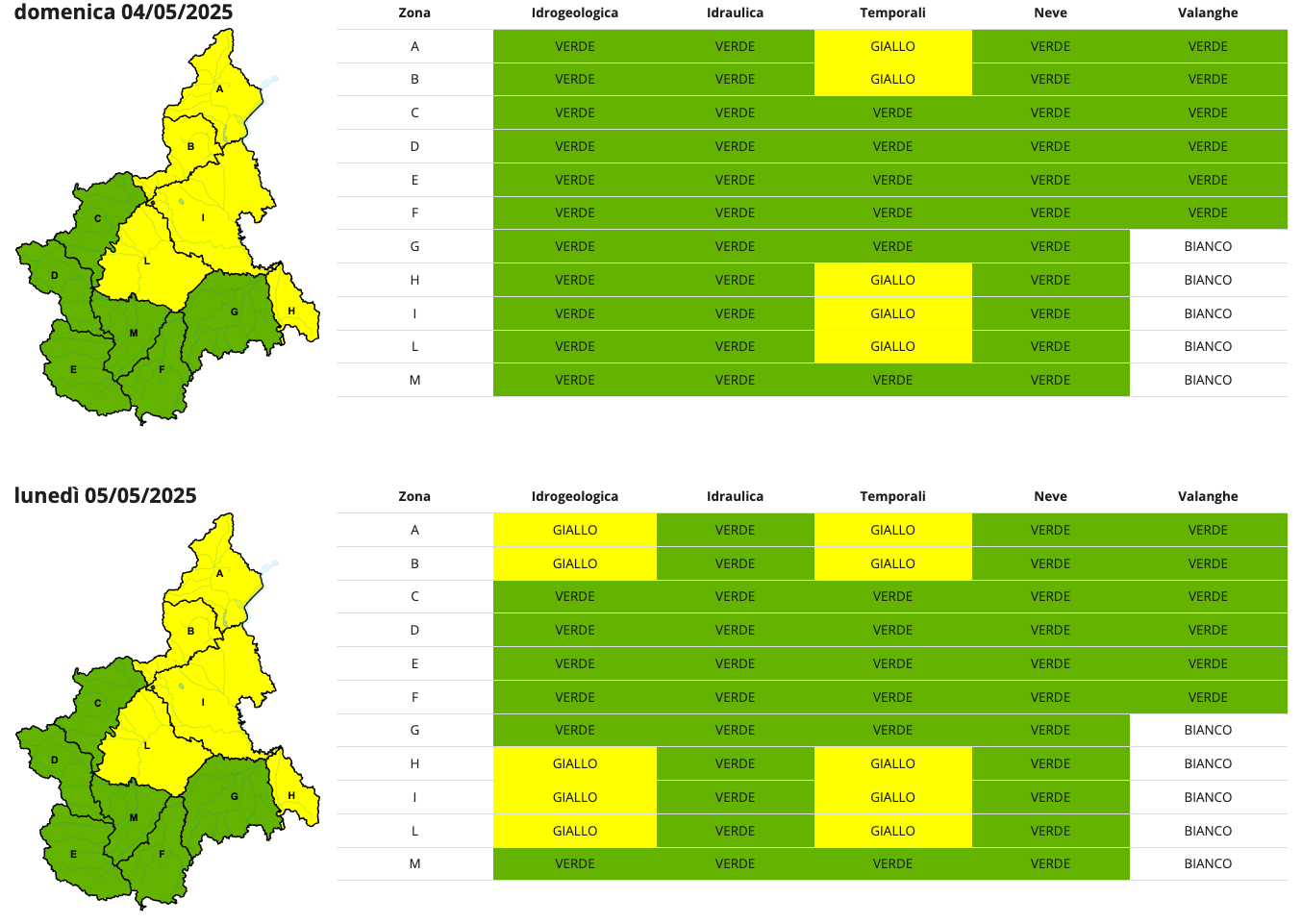 Poco fa l’aggiornamento: "Dal pomeriggio rovesci e temporali in spostamento verso est ed estensione alle zone di pianura, più intensi e persistenti sul settore centrale e settentrionale, in particolare dalla serata. Le condizioni di maltempo continueranno anche domani (lunedì, ndr), con precipitazioni moderate e diffuse, anche a carattere di temporale, localmente forti sulle aree al confine con Lombardia e Liguria centrale. Martedì ancora precipitazioni diffuse, con locali fenomeni intensi a est".