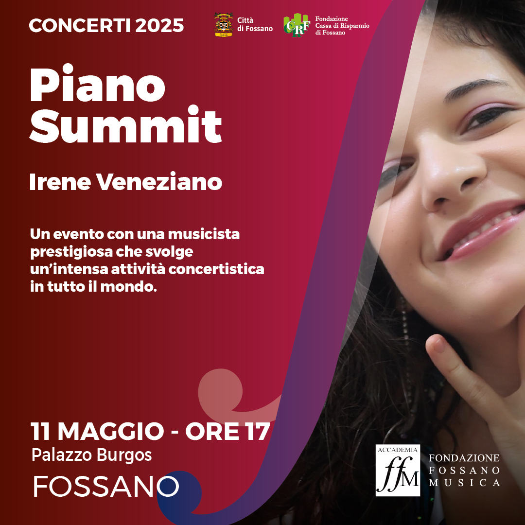 Prenotazione consigliata su https://fondazionefossanomusica.it/it/evento/irene-veneziano-piano-summit